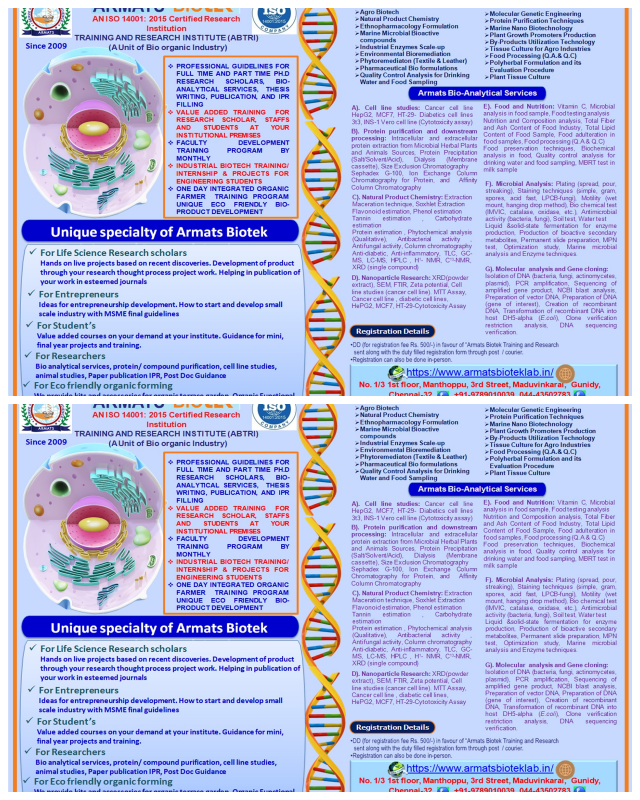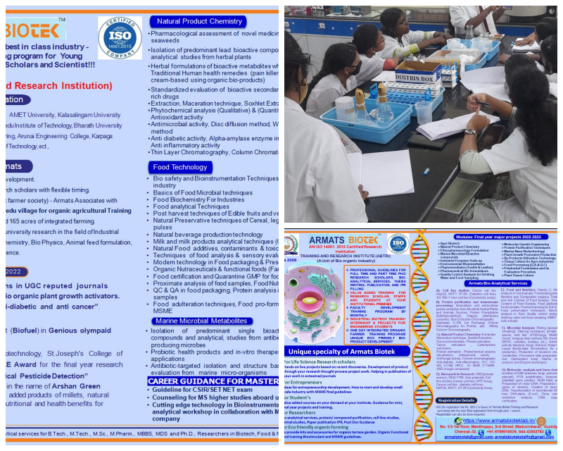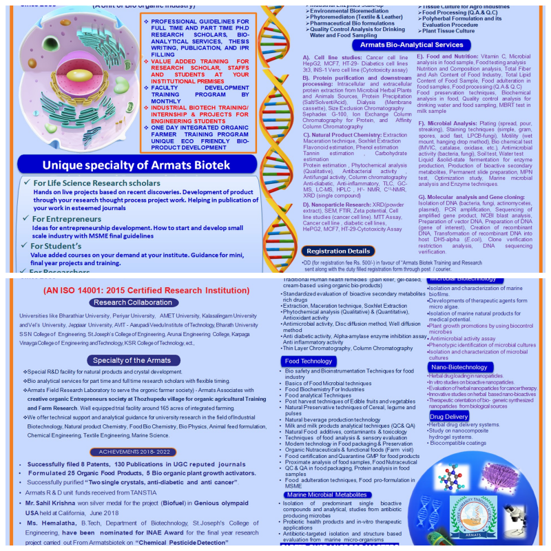 Armats Biotek is a great Training and Research institute. We can gain knowledge here. It is the best place to do research work.