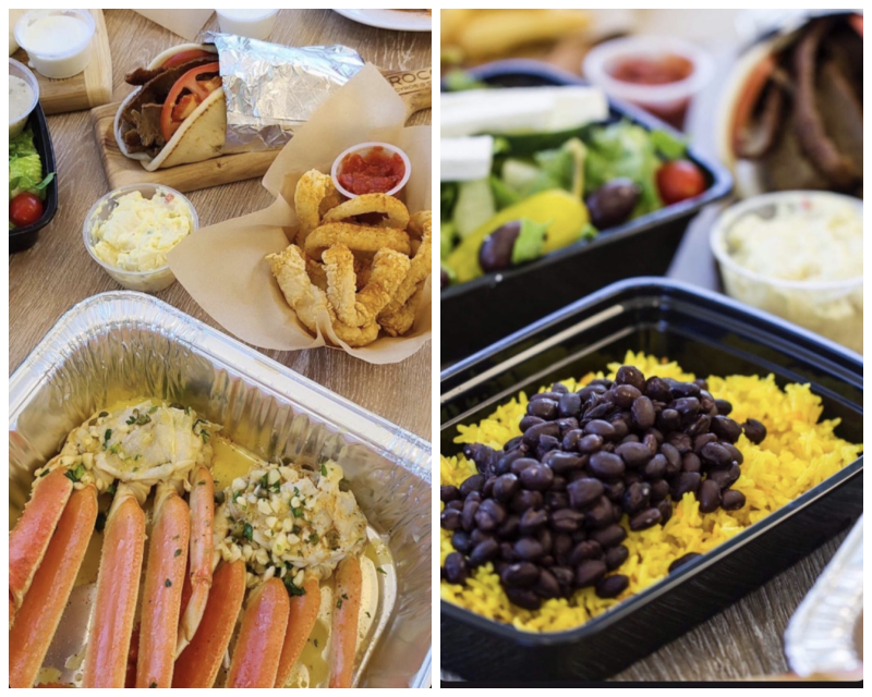 The gyro had a distinct taste, but the seafood lacked flavor.