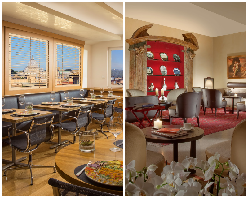 You might think you have arrived in the tropics and instead palm trees and vegetation hide a jewel: the Rapahel hotel. Just behind Piazza Navona, right in the center, the structure offers refined rooms of two types: in a contemporary style by the architect. Richard Meier is in traditional style. Some suites have a lovely terrace and on the top floor a wonderful restaurant with an incomparable view of Rome. Fantastic bathrooms with blackout windows overlooking the room and large double showers! Inside you will find precious collections of Picasso ceramics and other works, courtesy of the property. Also here organic food is a must and there is a splendid vegetarian restaurant.