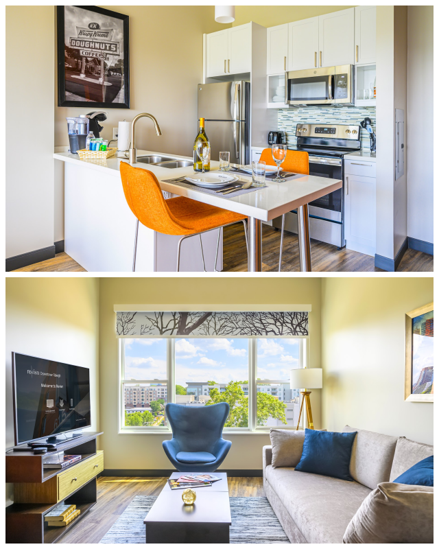 At Revisn, we believe in creating an environment where our guests feel at home while away from home. That’s why each apartment is thoughtfully designed with modern furnishings and decor that create an inviting atmosphere perfect for relaxation after a long day at work.